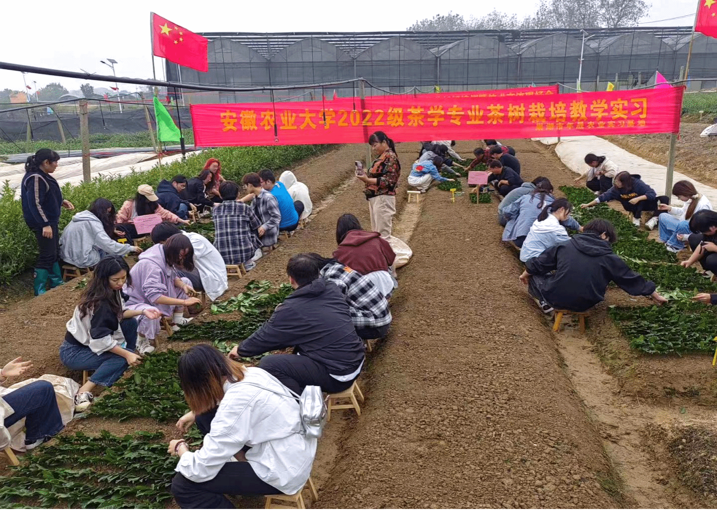 本网讯 10月13日,我院22级茶学专业茶树栽培学类课程教学实习在巢湖年晟农业生态有限公司实践基地开展。李叶云教授、杨天元副教授和童伟副教授等和巢湖市年晟生态农业有限公司相关负责人参加了本次教学实习。