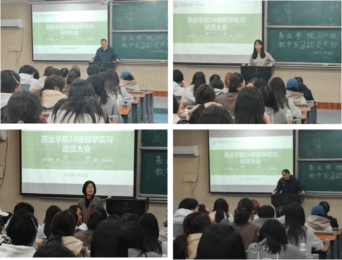 本网讯 3月23日晚19时,安徽农业大学茶业学院于茶业楼1992教室召开2024级茶学专业春季教学实习动员大会。院长宋传奎、副院长邓威威、茶学系主任夏恩华、带队指导教师宁井铭教授及全体指导教师出席会议,2024级茶学专业全体学生参加会议。会议由邓威威主持。