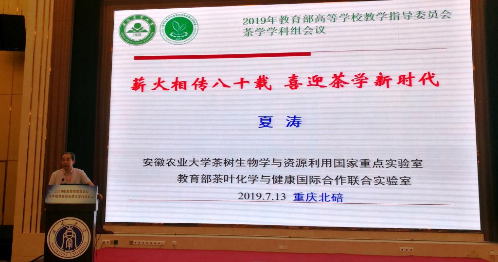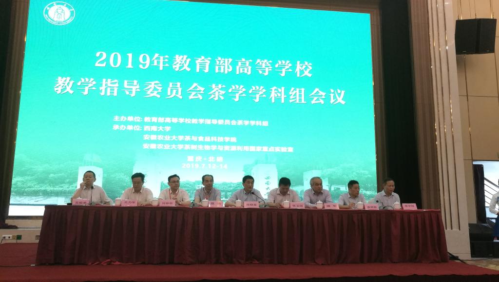 2019年7月12-14日,由教育部高等教育教学指导委员会茶学学科组主办,我室与西南大学联合承办的“2019年教育部高等学校教学指导委员会茶学学科组会议”在重庆北碚成功召开。校长夏涛教授、我室主任宛晓春教授率队出席会议。新一届教育部高等学校教学指导委员会茶学学科组全体委员、西南大学校长张卫国、重庆市农委与市科技局主要负责同志、全国43所高校和科研院所代表及数十家茶企业负责人,共计380余人参加了本次会议。