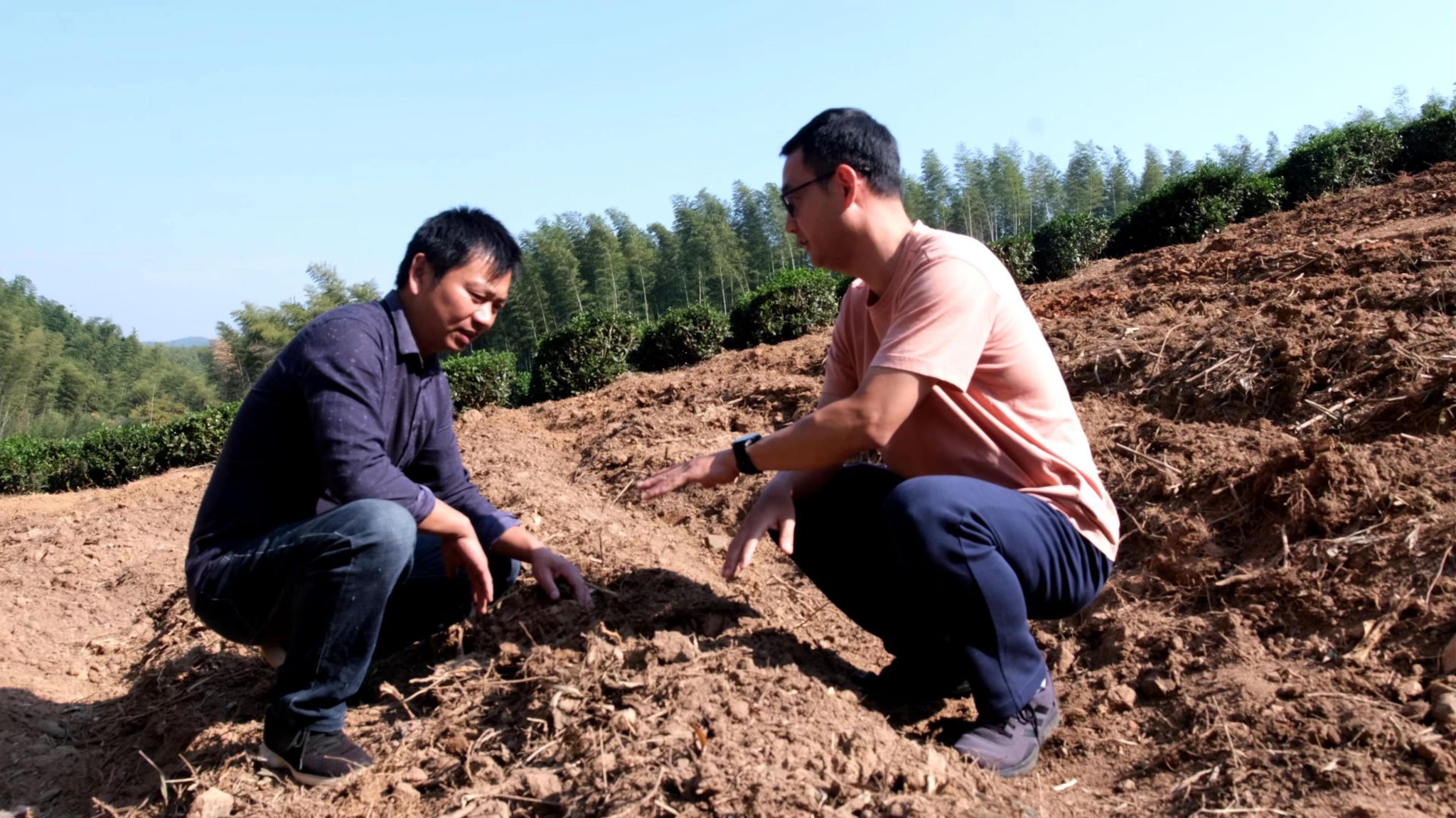 党员们首先来到濮塘村九龙坳茶山,在新开垦的茶园现场指导茶农开沟种茶、施用基肥、茶园喷灌系统布局与安装,并对成年茶园开展茶树病虫害防治技术、冬季茶园修剪与施肥技术进行现场指导。