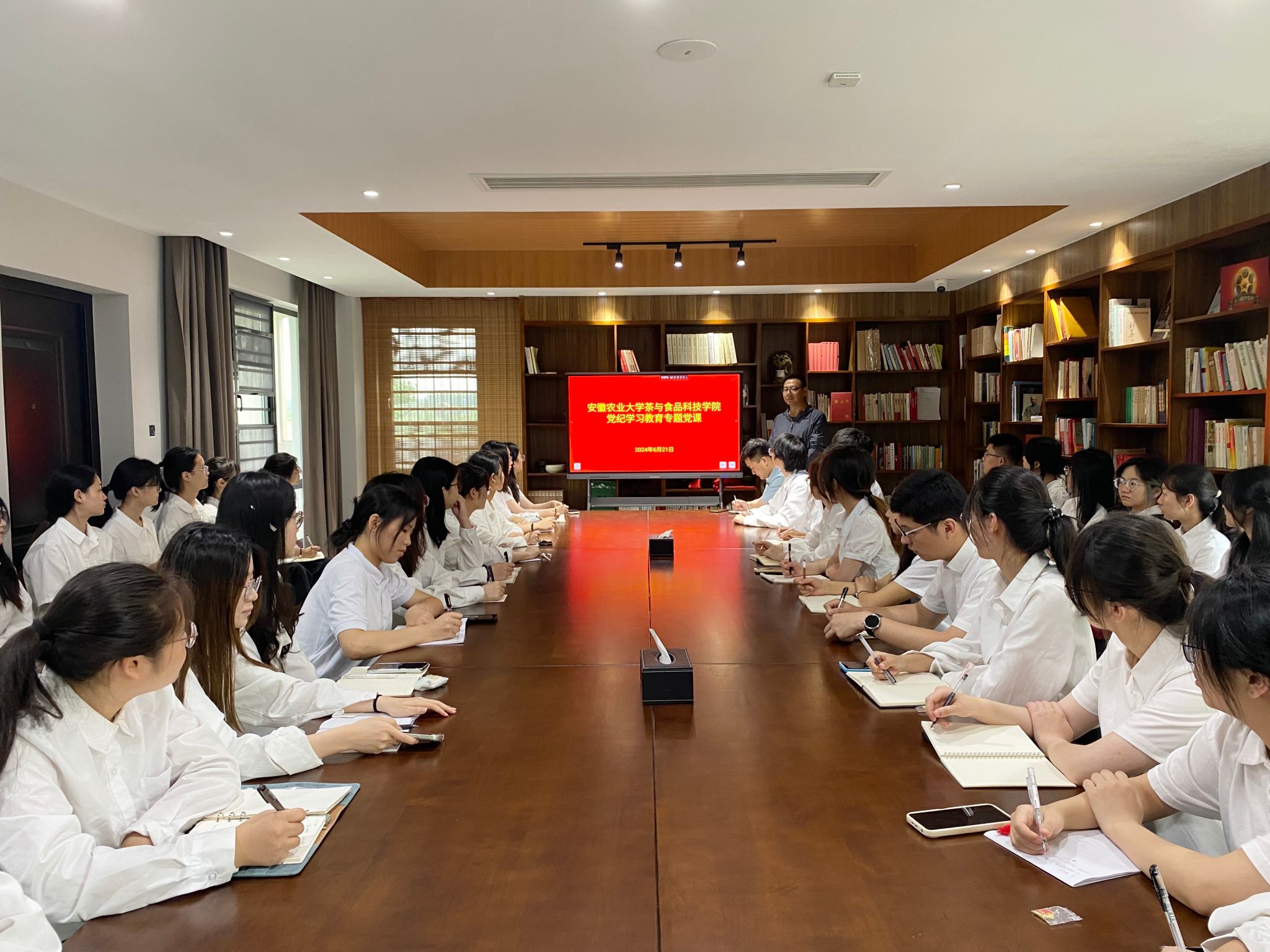 本网讯 6月21日,茶与食品科技学院组织新发展的学生党员以及部分正式党员代表赴中共合肥北乡支部纪念馆开展党纪学习教育暨集中入党宣誓。学院副院长张照亮出席活动。