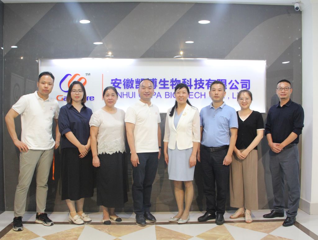 本网讯 为深入贯彻落实教育部访企拓岗促就业专项活动的实际行动,7月15日,茶与食品科技学院党委书记唐红萍、副书记夏业鲍、教授高学玲、食品营养与安全系教师孙玥等一行5人赴安徽凯博生物科技有限公司走访交流。