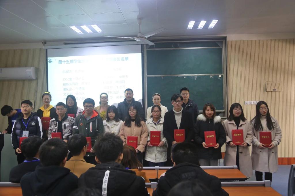 会议回顾了第十五届学生分会的重点工作和成绩。院团委老师通报了本届学生会换届筹备情况,综合学习绩点、考勤考核、工作成效等方面,评选出15名优秀学生干部和传媒中心、体育部2个优秀部门,并依次颁发了荣誉证书。第十六届学生会主席王源锦同学分享了在自己学生会工作的感悟,介绍了新一届学生会的工作设想和决心,并表示会在继承发扬往届学生会优良传统的同时搭建新的舞台,扬长避短,把工作做得更加出色。