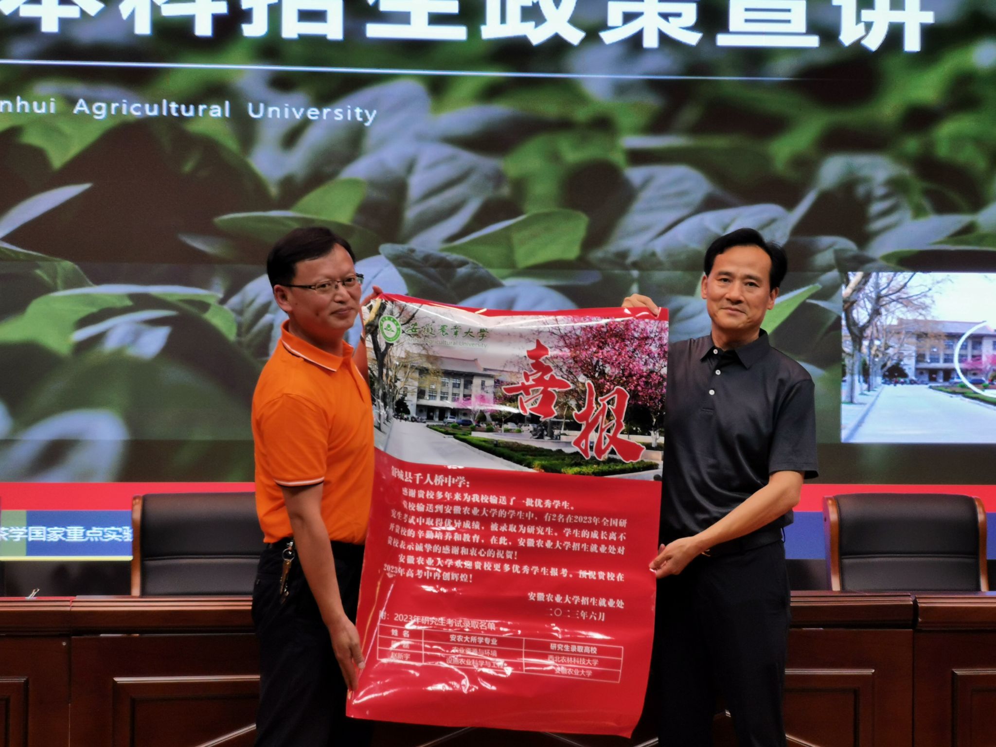签约暨揭牌仪式前,党委常委、纪委书记陈文兵带队赴舒城县千人桥中学送上考研喜报并进行招生政策宣讲。(作者:张亚彪,一审:张宪林,二审:刘广金,三审:唐红萍)