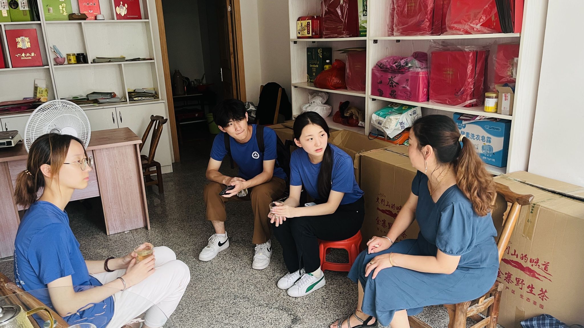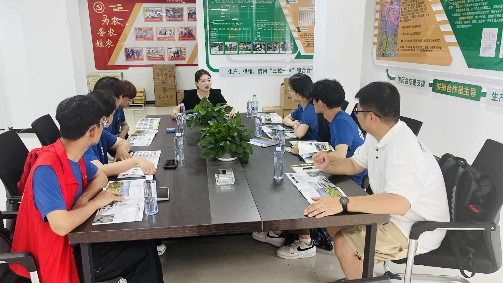 7月7日下午,实践团来到金寨县吴家店镇映山红农业发展有限公司,走进吴家店镇乡村振兴产业服务中心。公司与中国供销合作社合作,积极响应乡村振兴政策,深耕当地传统农业产业。乡村振兴产业服务中心直接同当地农户对接,服务中心定点定向收购当地农户的农产品,实现农业合作无缝对接,以土地流转带动当地农民走上了稳定增收的致富之路。据公司负责人介绍,当地政府目前计划依托当地大别山的自然环境优势,整合已有的温泉疗养基地等旅游项目及包畈村老茶厂产业,建设一条集观茶、采茶、制茶、品茶和游玩、采摘、民宿、休闲等于一体的金寨特色茶旅融合道路。吴家店镇通过茶旅融合的产业升级方式,促进当地茶产业提升价值链,让“一片叶子”带动当地经济发展,让“一缕茶香”飘香金寨大地。
