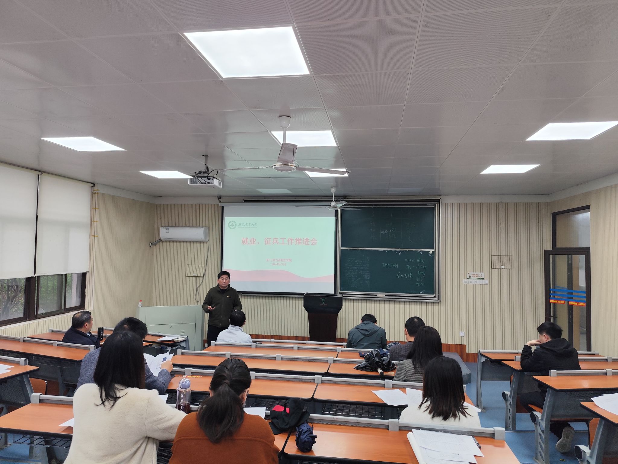 本网讯 3月27日下午,茶与食品科技学院召开2024年就业、征兵工作推进会。学院党政领导班子、系主任、学科点建设负责人、毕业班辅导员、相关工作联络员参加会议。会议由学院党委副书记、纪委书记沈周高主持。