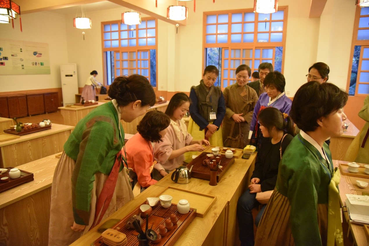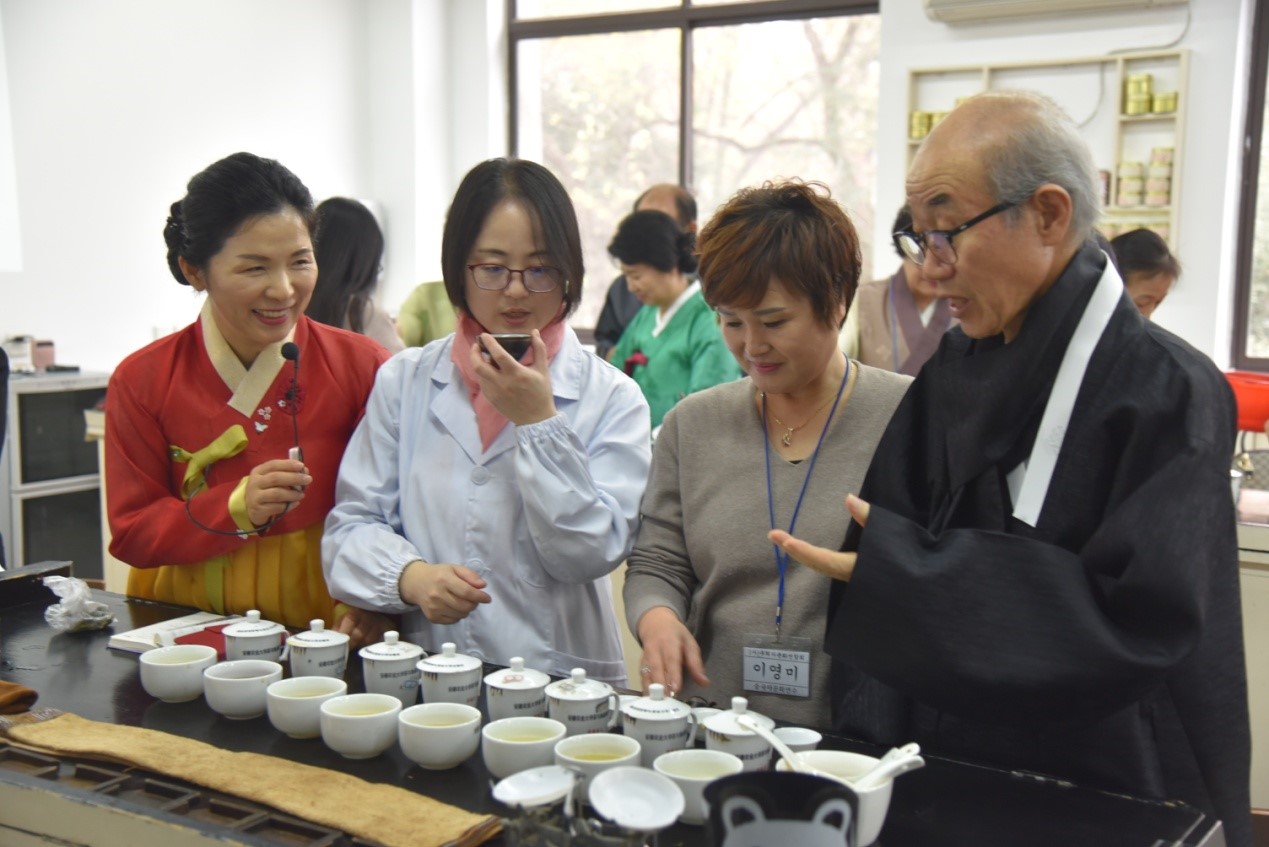 韩国参访团在茶与食品科技学院学习和体验中国茶文化,学习茶叶知识和审评方法,观摩并践习中国茶艺,参观茶学国家重点实验室。通过这次国际文化交流活动,韩国参访团对安徽农业大学产生了良好的印象,架起了中韩文化交流的桥梁。