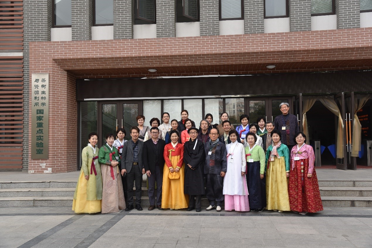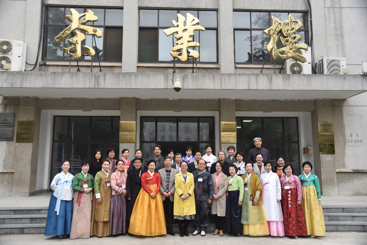 11月30日,由韩国韩中茶文化交流协会组织的韩国中国茶文化参访团一行26人参访安徽农业大学。上午8点半,在学校第三会议室举行了热烈的欢迎仪式。副校长姚佐文教授致欢迎辞,韩国韩中茶文化交流协会会长俞晶壬致答谢辞,校国际交流合作处姜红处长、校中华茶文化研究所丁以寿所长、茶与食品科技学院戴前颖副教授等出席,欢迎仪式由茶与食品科技学院党委书记崔云主持,与会领导和来宾在勤政楼前合影留念。