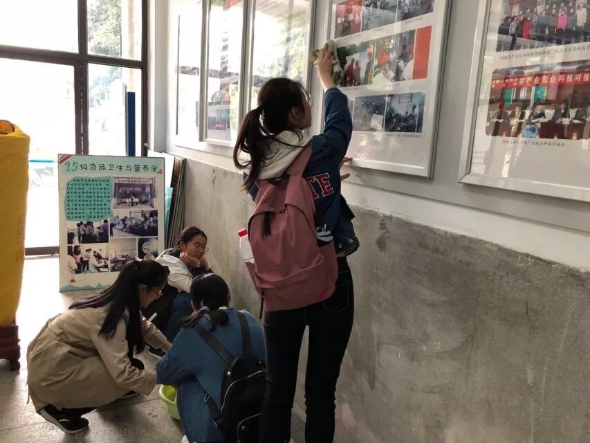 90周年校庆,茶与食品科技学院发出亮化茶业楼的倡议。10月17日下午,2018级各专业志愿者、学生党员在茶业楼开展义务清扫。