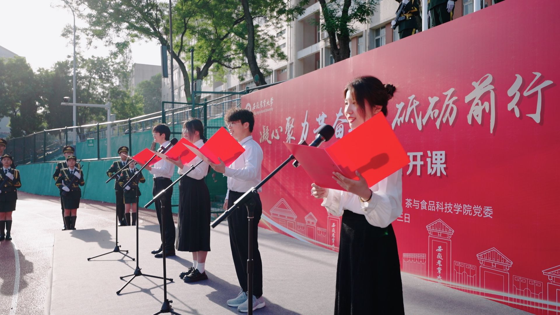 本网讯 5月13日,茶与食品科技学院举办“凝心聚力共奋进,砥砺前行谱新篇”升旗仪式暨“国旗下的公开课”活动。校党委学工部负责人、学院党政领导、全体辅导员及教师代表、学生党员、入党积极分子、新发展团员及2023级新生参加本次活动。活动由学院党委书记唐红萍主持。