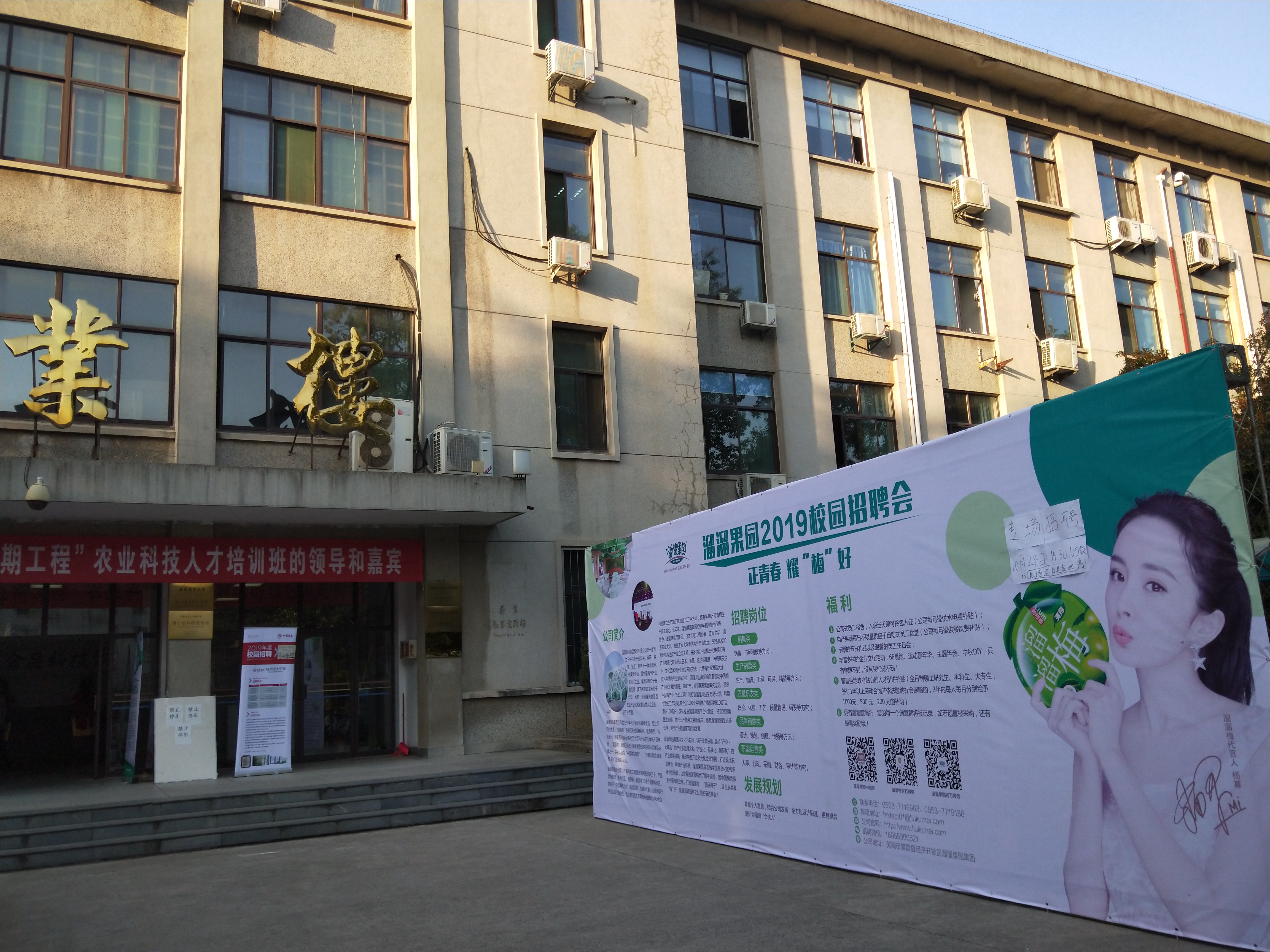 本网讯 10月份以来,茶食学院先后组织北京小罐茶业有限公司、安徽溜溜果园集团、安徽老乡鸡餐饮有限公司、杭州远大生物科技有限公司等多家优质用人单位来学院开展小型校园专场招聘会。学院2019届部分本科毕业生、研究生等100多名同学先后参加了招聘活动。