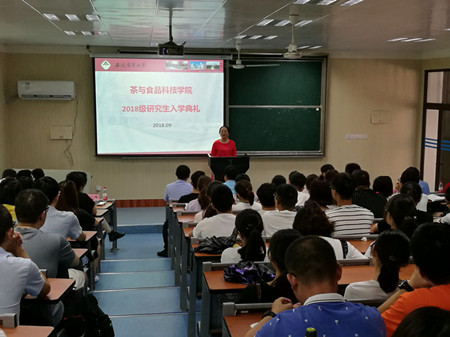 本网讯9月3日下午两点,茶与食品科技学院在茶业楼1992教室举办了2018级研究生新生开学典礼。学院2018级全体博士研究生、硕士研究生参加了会议,学院党委书记崔云老师、院长张正竹教授等学院全体党政领导以及学位点负责人出席了会议。会议由副院长李大祥主持。