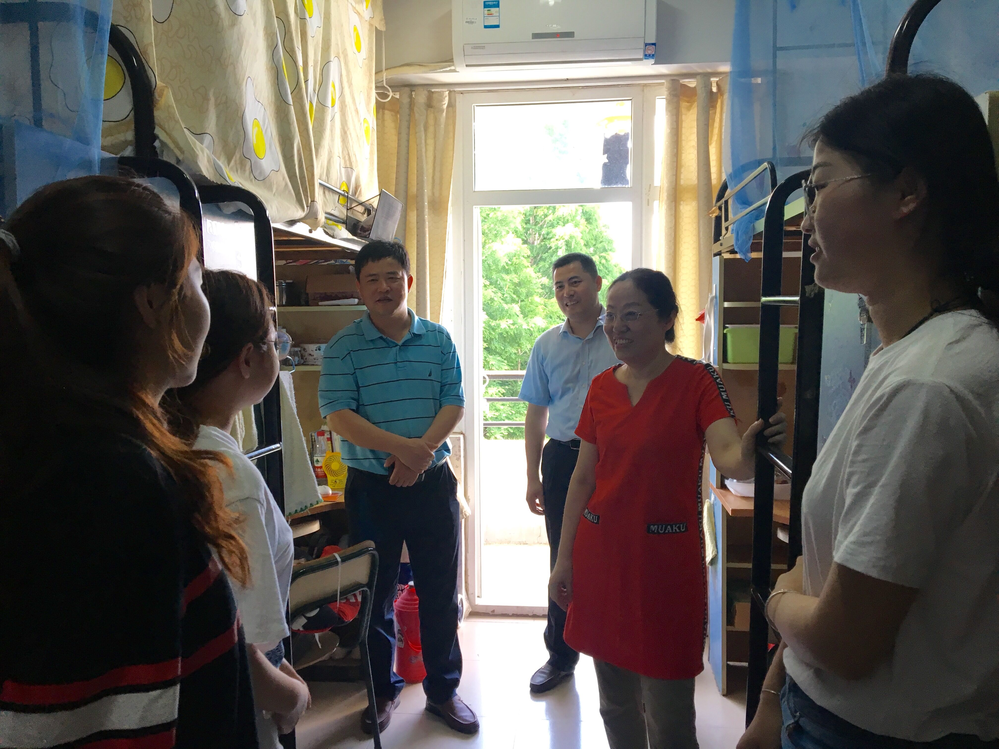 本网讯 6月13日下午,茶食学院党委书记崔云,院长张正竹,党委副书记、副院长张国学,毕业班专兼职辅导员、学院党委办公室老师等一起走访宿舍看望了学院本科毕业生,为即将踏上人生新征程的毕业生们送去离别前最真挚的关怀与祝福。