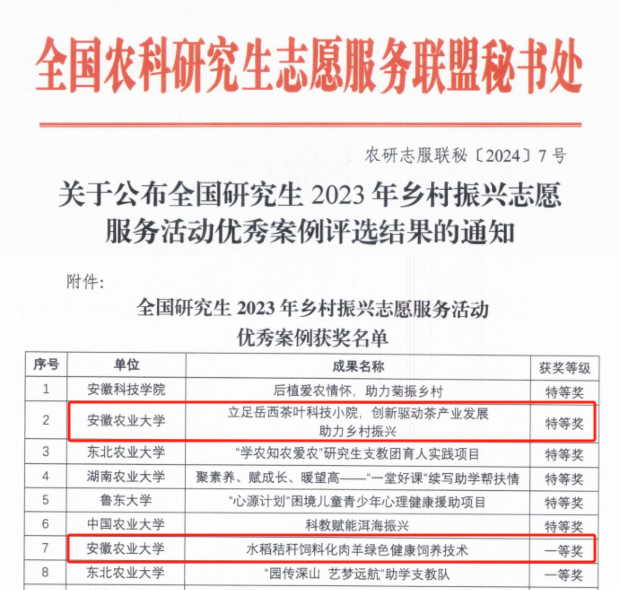 本网讯 近日,全国农科研究生志愿服务联盟秘书处下发了《关于公布全国研究生2023年乡村振兴志愿服务活动优秀案例评选结果的通知》,我院推荐的《立足岳西茶叶科技小院 创新驱动茶产业发展 助力乡村振兴》案例获得特等奖。