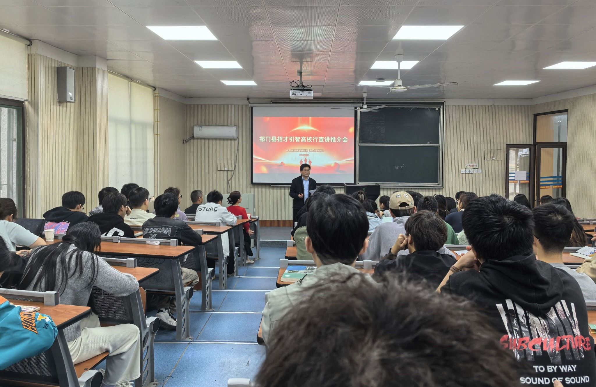 宣讲推介前,学生们观看了祁门县人才政策宣传片。