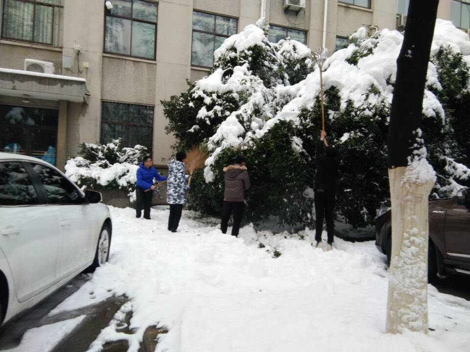 由于雪还在继续,5号下午学院又组织学生重点对茶业楼前树木上的积雪进行了一次清理,尽最大可能保护茶业楼周边广玉兰、雪松、丹桂等这些珍稀的树木花草,努力保护我们和谐、文明、美丽的家园。(苗金凤 通讯员:陈娟)