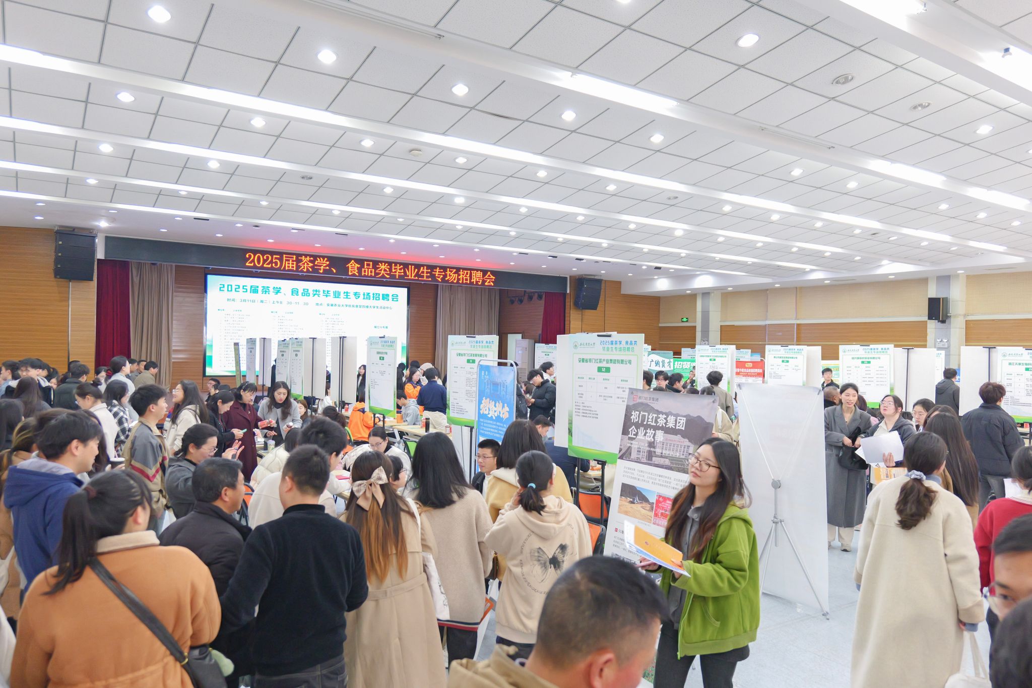 此次招聘会邀请了霸王茶姬、捷迅光电、元气森林、八马茶业、小罐茶、谢裕大、祁门红茶、徽六、国润茶业、黄山毛峰茶业集团、品品香茶业(北京)、祥源茶业、黄山水工、伊利乳业、青松食品、王仁和米线等57家省内外知名企业参会,提供研发、品控、检测化验员等1000余个就业岗位,接受投递简历2300余份。招聘现场用人单位招聘人员热情地向毕业生介绍单位的基本情况、岗位需求、薪资待遇和职业发展前景等信息。毕业生积极与招聘单位交流,并结合自身的专业特长和兴趣投递简历,现场气氛热烈有序。学院各系主任、毕业班辅导员现场指导学生择业并与企业交流,部分毕业生与用人单位现场达成就业意向。