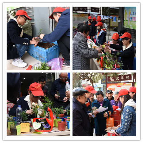 3月1日,志愿服务团一行15人来到我院“青年志愿者社会实践服务基地”——琥珀街道北苑村社区的门前广场,他们用废旧的矿泉水瓶,拦腰一剪,变成了花盆,种植上一株株生机勃勃的小绿植。花盆上,还张贴着志愿者一笔一划抄写的“雷锋语录”。同时,雷锋知识问答、守护舌尖上的安全、茶艺表演等项目也吸引很多社区居民的参与,志愿者们用多种形式传递不朽的雷锋精神。此次活动受到了江淮晨报和合肥文明网的报道。