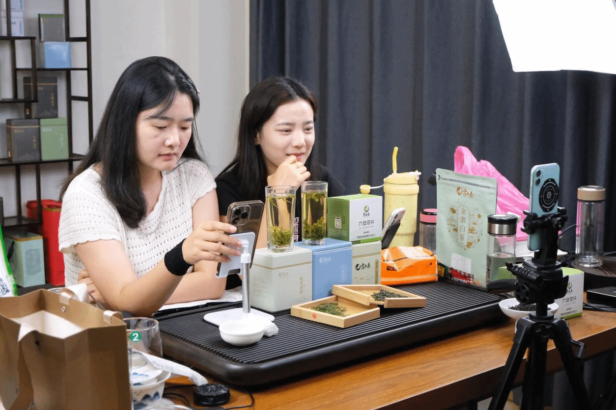队员们还参观了露雨春的生产线,负责人介绍,春茶季是生产线最忙碌的时期,并详细讲解了 “夜露吐绿” 的特殊工序 —— 将拉过小火的瓜片放入原料车间旁的专用房间,通过人工加湿模仿自然夜露环境,以提升茶叶品质。谈及销售渠道创新,负责人表示正积极顺应年轻人网上买茶的消费趋势,专门开辟了直播间,队员们现场观看了主播热情介绍产品的场景。