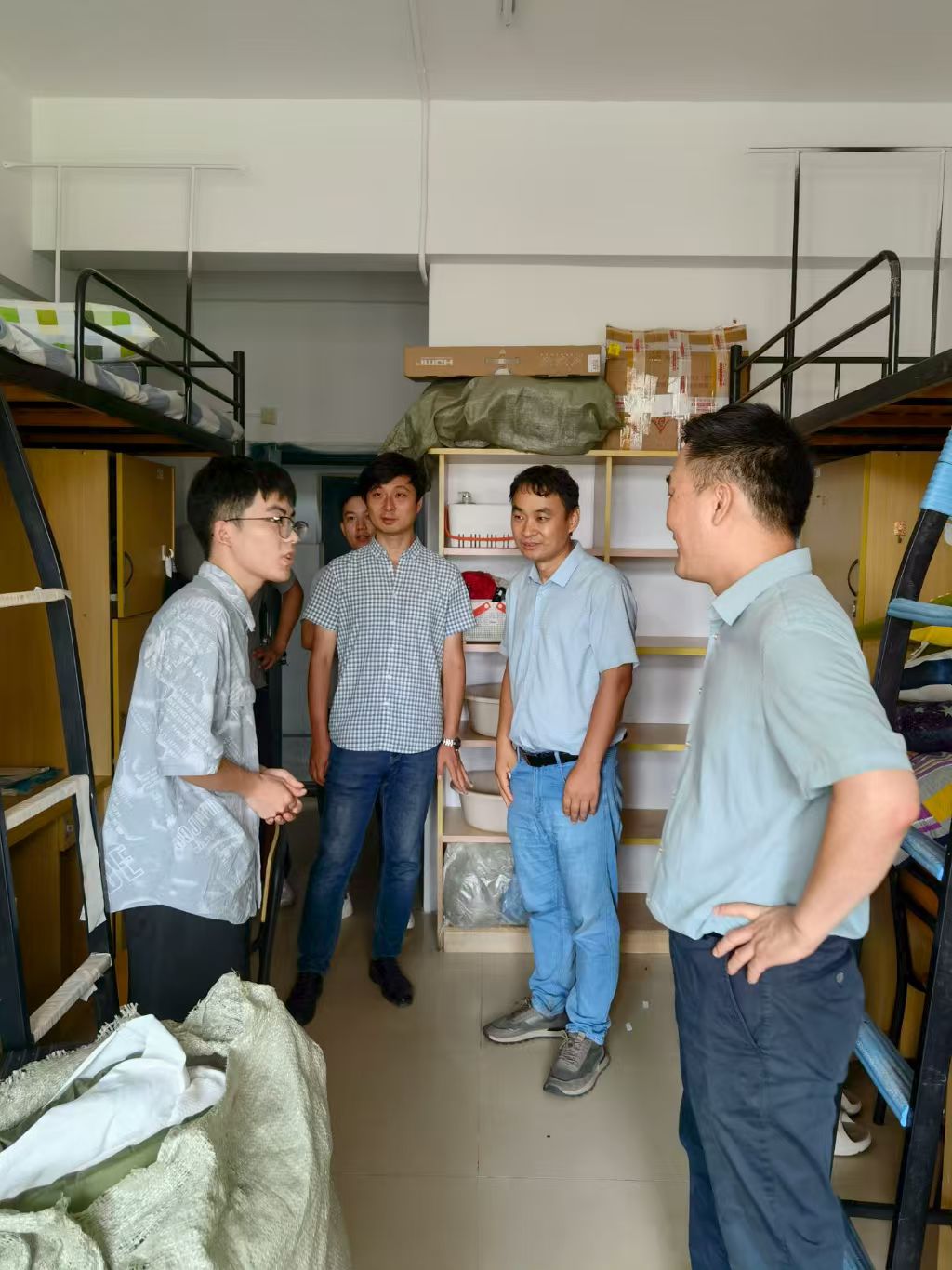 走访过程中,老师们与新生促膝谈心,询问大家的住宿体验、生活需求及入学后的适应状态,对同学们提出的校园生活、学业规划等疑问逐一耐心解答。同时,老师们叮嘱新生要尽快熟悉校园环境、融入集体生活,遇到困难,及时向老师或学院寻求帮助。