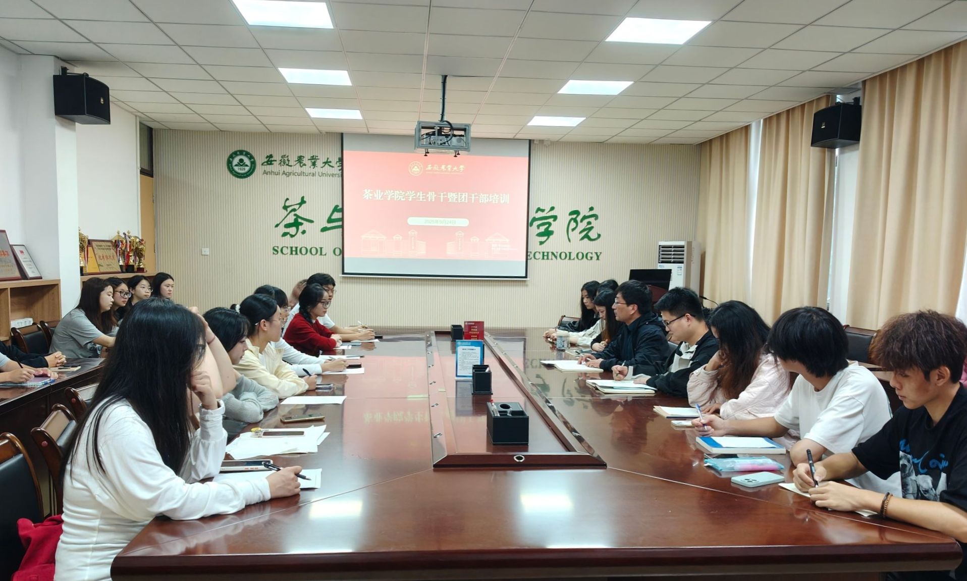本网讯 为强化学生组织骨干的责任意识与服务能力,凝聚团学工作合力。9月24日,茶业学院在学院221会议室召开学生会骨干暨团干部培训会。学院党委副书记、纪委书记沈周高、院团委副书记、院团委指导老师,以及院学生会全体骨干、各班级团干部共同参会。