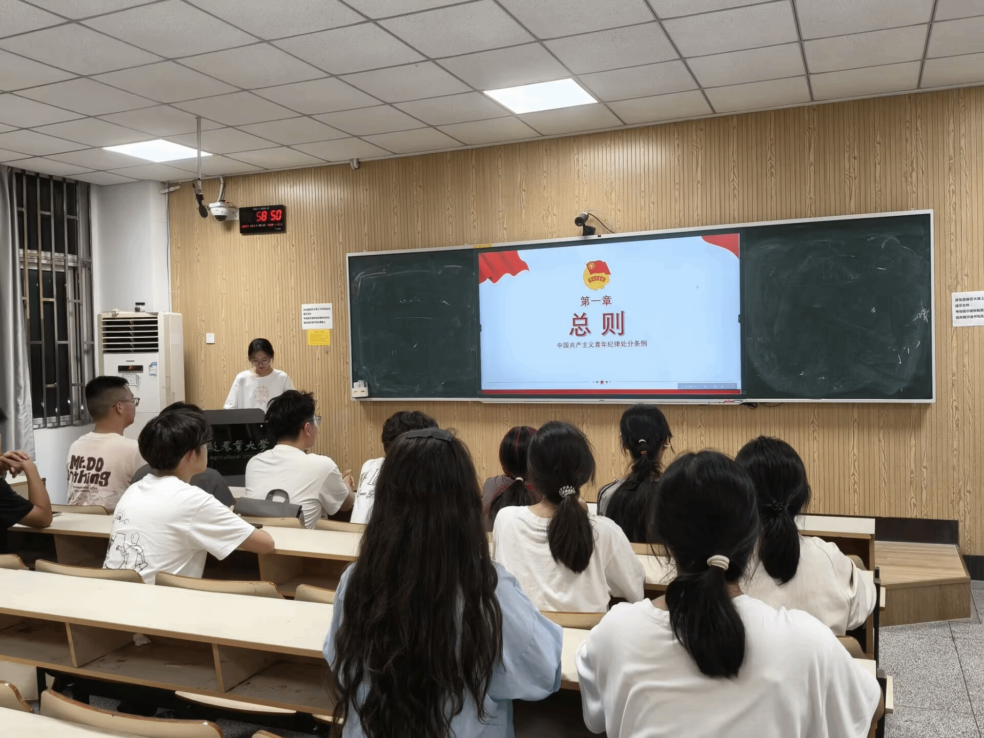 宣讲会上,刘悦同学以“条例原文+校园案例”为核心,聚焦团员日常的组织纪律与生活纪律,通过“网络言论失范”等身边事例,剖析违反纪律的具体表现,让抽象的条例条款变得具象可感;徐子萌同学围绕《条例》修订的时代背景,结合共青团服务青年的工作实际,分享“团员下沉社区服务”“助力同学解决学业难题”等践行纪律的正面案例,为团员们明确了合格团员的行为标尺;蒋霄萌同学则以 “纪律传承与青年担当”为主题,梳理了团的纪律建设发展脉络。她结合革命时期青年团员严守纪律的红色故事,与当下《条例》对新时代团员的新要求进行对比,引导团员们从历史中汲取守纪律、勇担当的力量,激励大家在新时代展现青年团员的良好风貌。