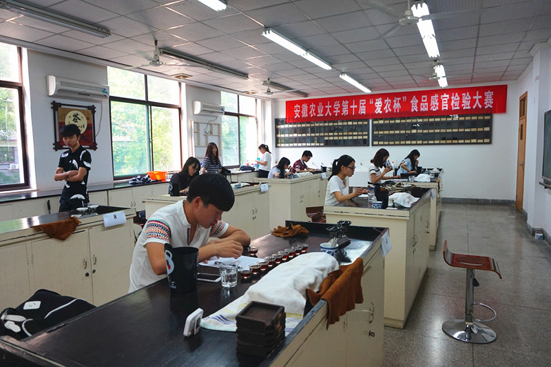 本网讯 6月16日下午,茶与食品科技学院第十届“爱农杯”食品感观鉴评竞赛决赛在茶业楼三楼食品感官实验室举行。学院党委书记崔云、副院长周裔彬等老师莅临现场观看了比赛。食品系张海伟等几位老师担任了此次比赛的评委。