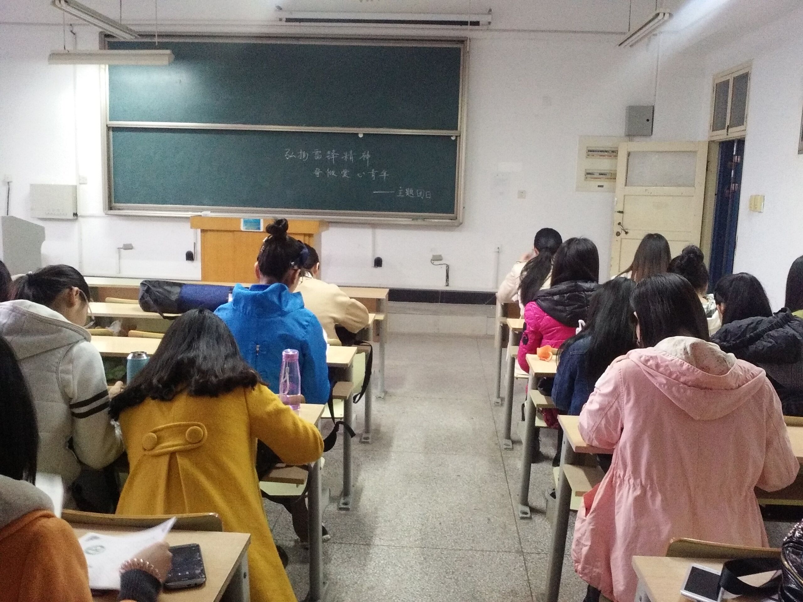 我院积极开展“弘扬雷锋精神,争做爱心青年”主题团日活动。2014级食质专业团支部带领同学们学习雷锋,重温雷锋事迹,号召每一位同学利用课余时间通过图书、网络等渠道,收集雷锋生平事迹,学习雷锋精神。在主题团日交流活动后,同学们开展了义务清扫茶业楼的活动,把学雷锋精神落实在实际行动当中,真切的感受雷锋精神的力量。