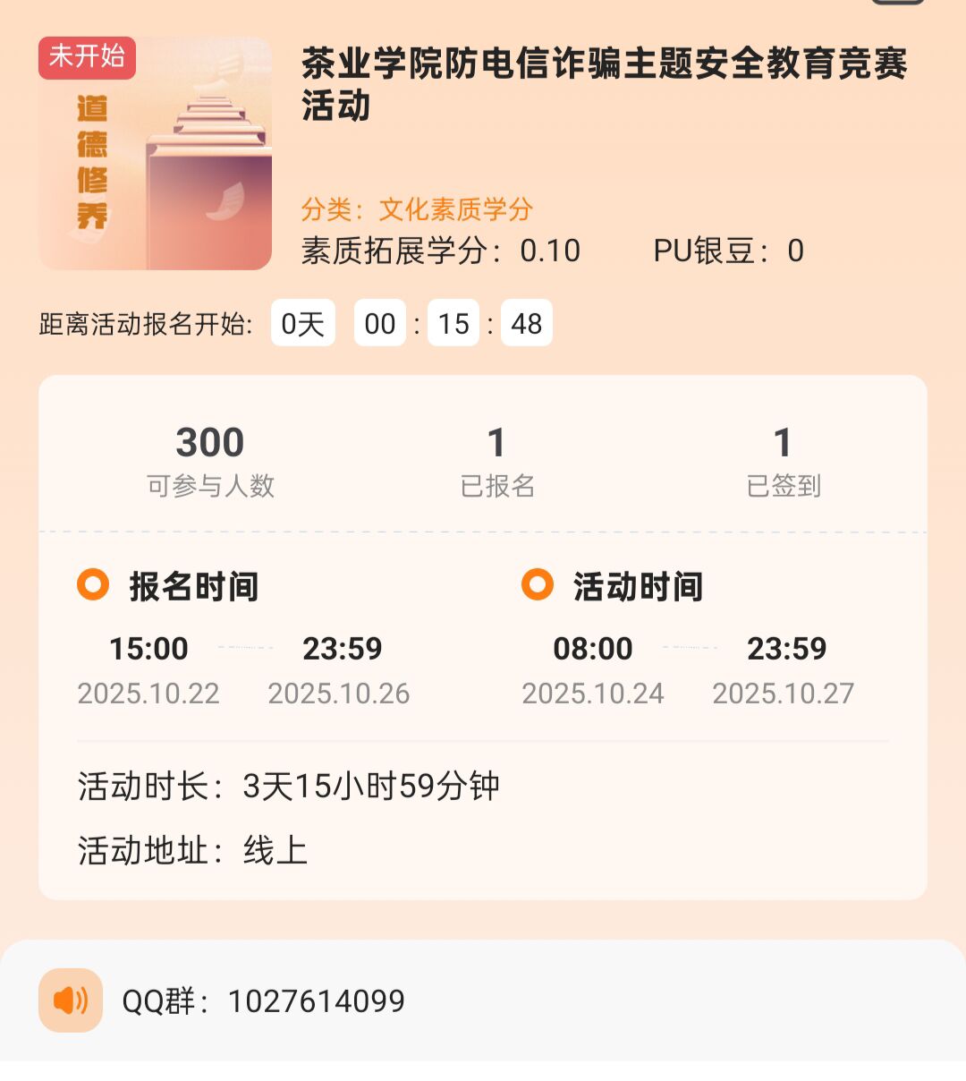 此次反诈系列活动是茶业学院推进安全教育常态化的重要举措。下一步,学院将持续深化反诈工作成效,一方面建立 “班级反诈专员” 制度,依托班级群、微信公众号等平台实时推送最新诈骗案例与防范指南;另一方面结合学科特色,开展 “反诈主题海报设计”“茶乡反诈宣传志愿服务” 等特色活动,推动反诈教育从 “集中宣传” 向 “常态化浸润” 转型。同时,学院将联动家长、社区民警构建 “家校警” 联动机制,形成反诈合力,为建设平安校园、守护学生成长筑牢坚实屏障。(图:王扬 文:金傲伟 初审:张宪林 复审:沈周高 终审:姜家生)