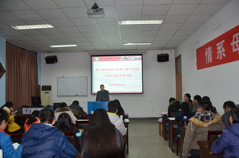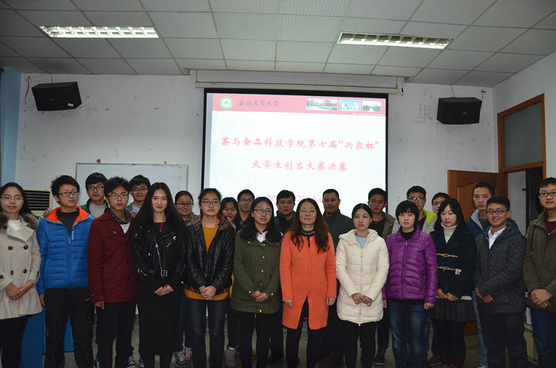 本网讯 12月4日下午,茶与食品科技学院在茶业楼105会议室举办了第七届“兴农杯”大学生创客大赛决赛。院党委书记崔云、院长张正竹、党委副书记、副院长张国学、副院长周裔彬、茶业系蒋文倩、食品系汪名春等老师担任决赛评委。此次创客大赛由学院团委老师主持。