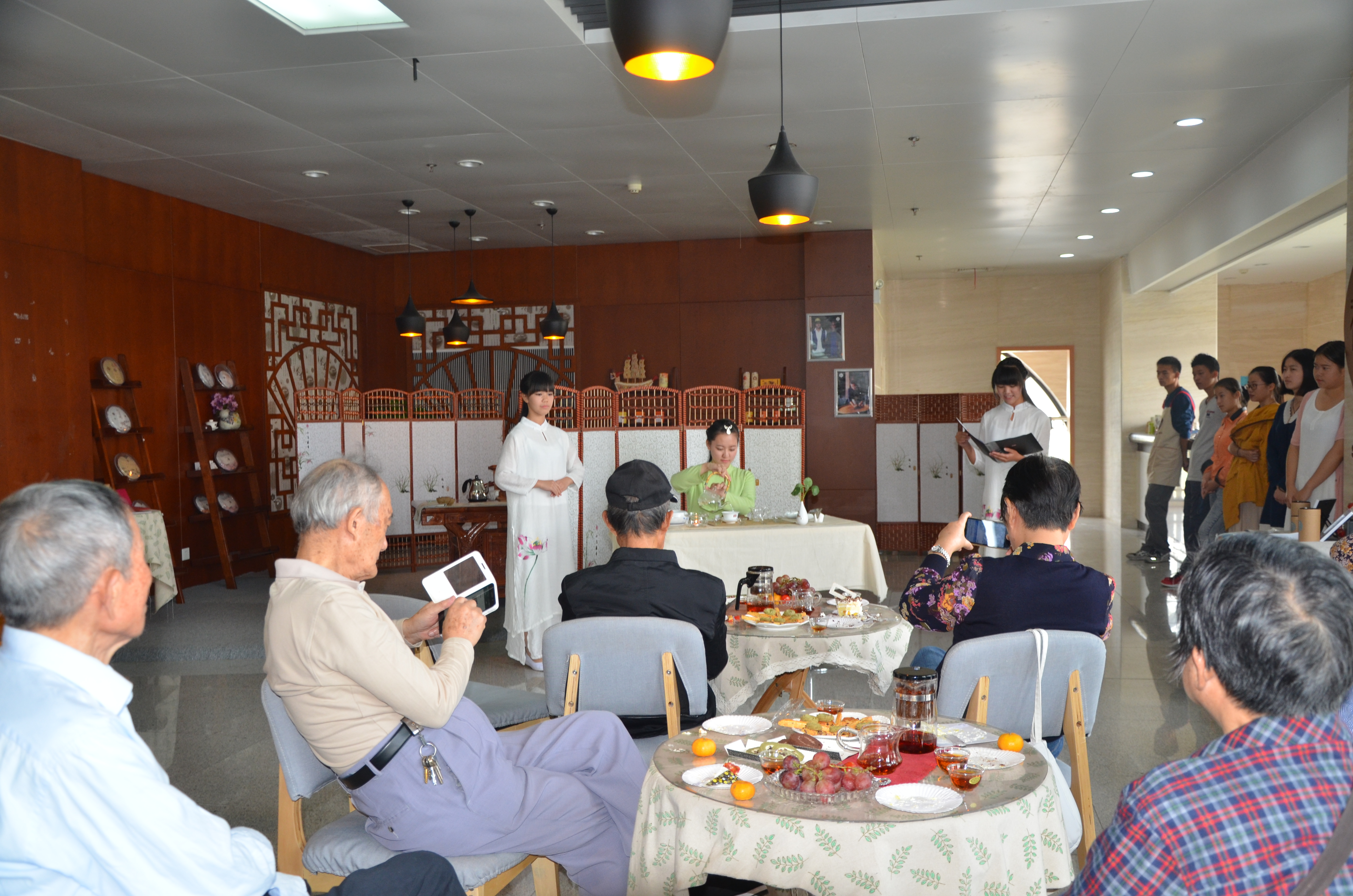 老教师们听取了创业项目负责同学的汇报,饶有兴致地了解参观了创业公司的实地情况,观赏了由学院同学表演的茶艺,并回答了创业项目社会价值和产品服务等方面的问题。老教师们对学院尊老、敬老、爱老的传统表示感谢,对学院工作取得的成绩表示肯定,同时对学院工作提出了建设性意见。老教师们对在校大学生创业进展表示赞赏,他们表示这是学院学科建设结合生产实际的新的突破,也是在校大学生锻炼能力、服务社会、提升自身价值的新的进步。同时,他们对相关的创业产品和服务模式提出自己的想法和建议,对新一代茶食学子寄予了殷切期望。活动现场其乐融融,充满了别样的温暖。(张奎)