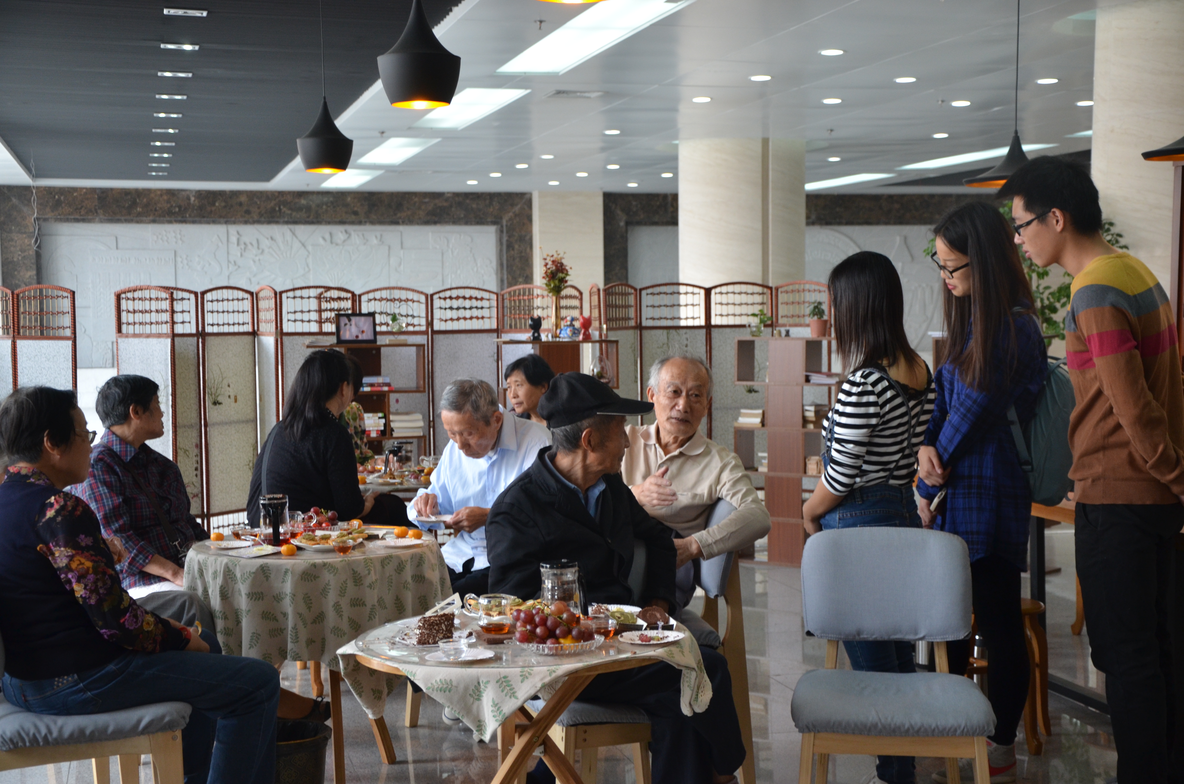 本网讯 “九九重阳节、浓浓敬老情,人间百善孝为先、九九重阳享健康”,10月21日重阳佳节,我院邀请学院离退休老教师到新图书馆一楼大学生创业项目“一盏年华”祥源茶吧和“享味坊”食品公司参观指导。院党委书记崔云、副院长周裔彬参加了本次活动。