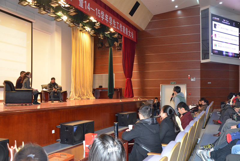 在大屏幕播放的安徽省教育年度人物、教育部教学成果奖获得者、“全省联系群众、服务基层的沈浩式机关干部”、全国“党和人民满意的好老师”候选人……的院长简介中,我们迎来了翘首以盼的“我与院长面对面”活动。虽说是寒冬,但会场内却流动着一股温馨的暖流。张正竹老师一走进会场就吸引了同学们的目光,热烈的掌声响彻了整个报告厅。“感谢学院的筹划安排,为我和同学们之间搭建了一个很好的交流平台。我也很荣幸,有这么多同学愿意与我进行沟通。”活动刚开始,张正竹就和同学们分享了出席本次活动的心情。