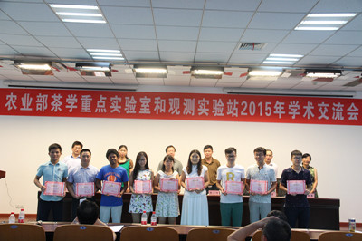 本次会议共举办参会单位发展情况专题报告10场、学术报告22场,收集和展示“优秀科研成果poster” 32份,举办“我国茶产业重大面临的重大科学和关键技术问题及‘十三五’重大项目研讨会”1场,内容涉及茶树种质资源、茶园管理、病虫害防治、茶树栽培生理、茶树分子生物学、茶叶化学与次生代谢、茶叶加工、茶叶深加工与综合利用、茶叶机械、茶叶健康功能等众多领域,基本上反映了当前我国茶学界的最新科研成果,其中参会的45岁以下青年学者约占总人数的80%。会议间隙,还组织专家对poster进行评优,并对优秀poster作者进行颁奖。