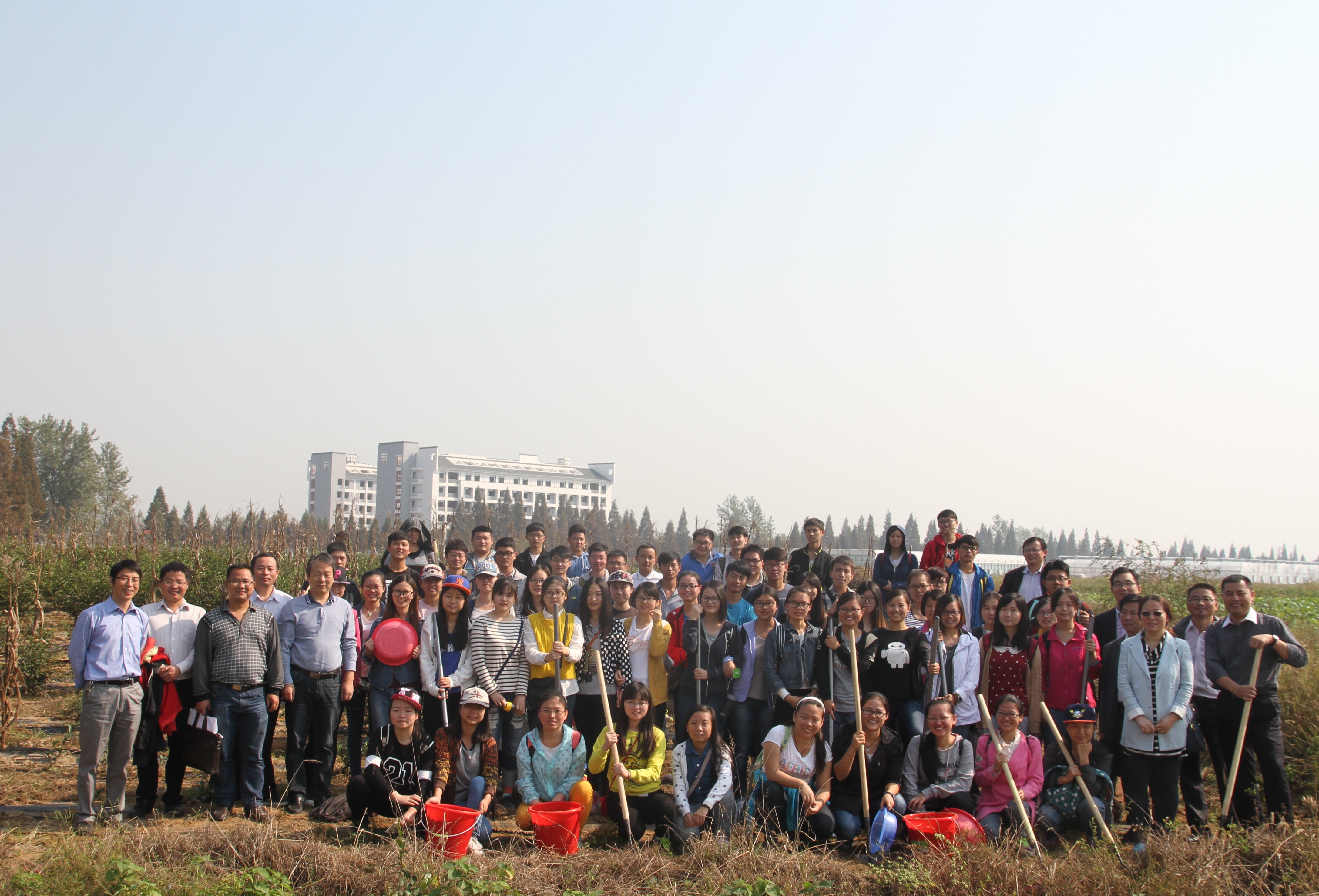 本网讯 10月11日,茶与食品科技学院组织2013级茶学专业学生赴我校农业园郭河基地开展茶树栽培育种教学实习。学院党委书记崔云、院党委副书记副院长张国学、国家重点实验室常务副主任韦朝领、副院长周裔彬、李大祥,以及实习带队教师参加了本次活动。