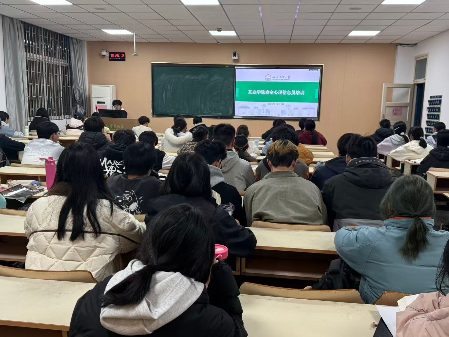 培训采用 “理论讲解 + 案例分析 + 情景模拟” 的形式,结合茶学学子真实心理案例增强代入感,组织信息员现场演练沟通话术与危机初步介入技巧,并明确 “及时发现、科学反馈、适度关怀、严守秘密” 的工作准则。