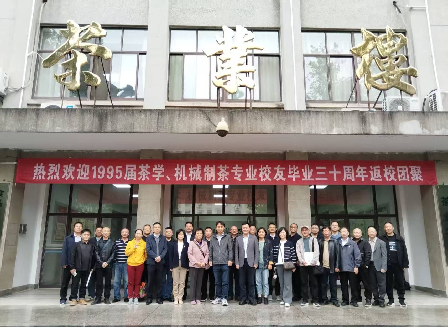 本网讯 10月18日,秋意正浓,茶香情暖。茶业学院茶学专业、机械制茶专业1995届校友从四方奔赴而来,重聚于母校怀抱,共同追忆青葱求学时光,畅叙深厚师生情谊,现场气氛温馨而热烈。