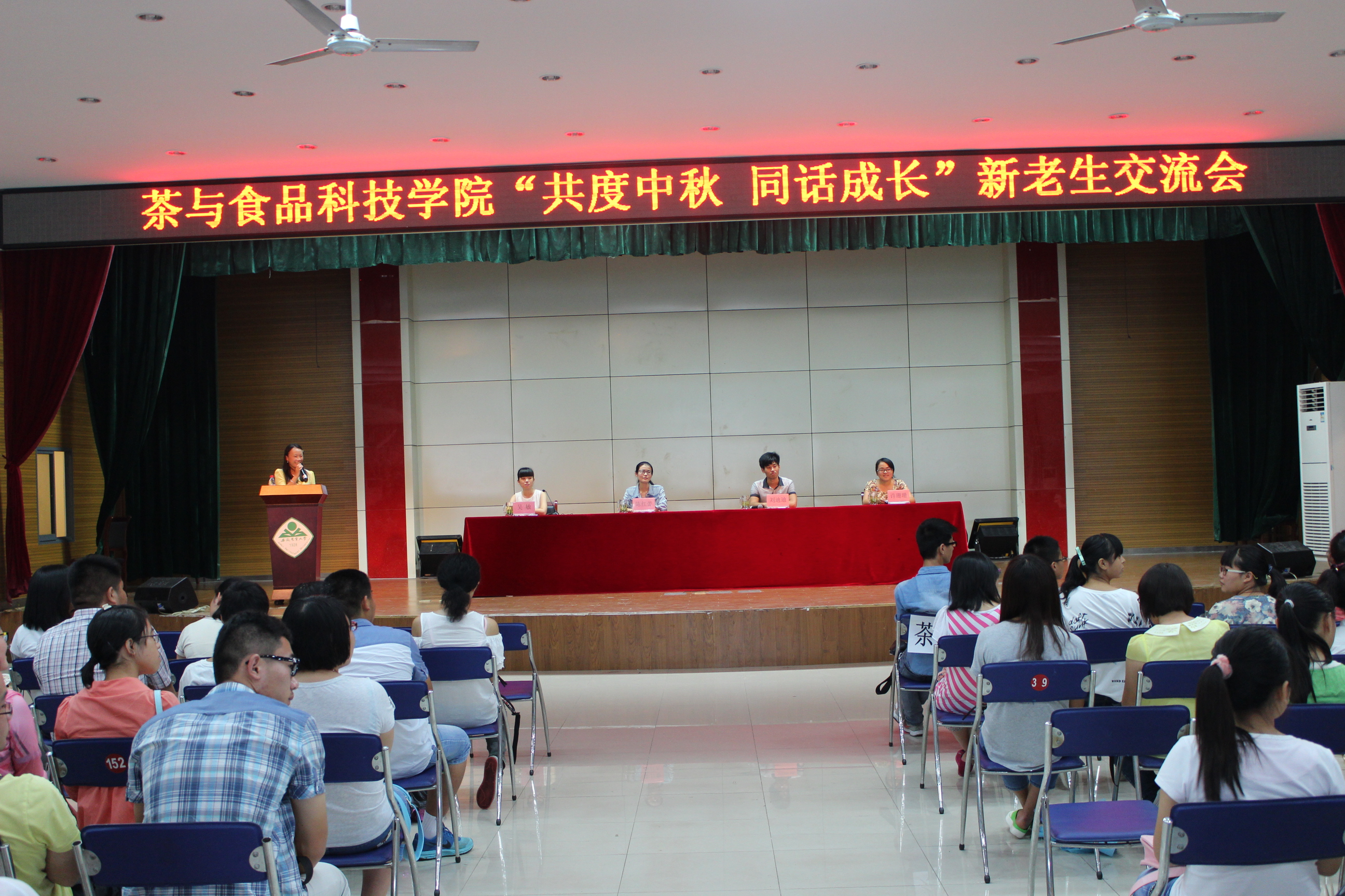 本网讯金秋送爽,桂香校园,莘莘学子们满载希望迈入新征程,开启人生新篇章。“昨夜西风凋碧树。独上高楼,望尽天涯路。” 9月8号下午,茶食学院在欣苑学生活动中心举行“共度中秋,同话成长”中秋交流会,畅谈大学之生活、人生之方向,共享月饼,共话中秋。