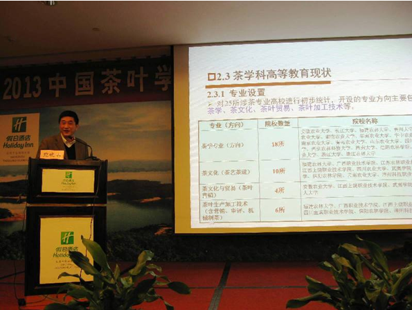 会上,实验室主任宛晓春教授作了《我国茶学科高等教育发展基本现状及思考》的主题报告,重点介绍了我国茶学学科发展的现状、剖析了存在的问题及未来可持续发展的建议。江昌俊院长介绍了我校茶学学科和茶叶重点实验室的基本情况,重点介绍了我校茶学专业学生的招生、培养及就业情况,并对学院2014年的茶学毕业生进行了推介。