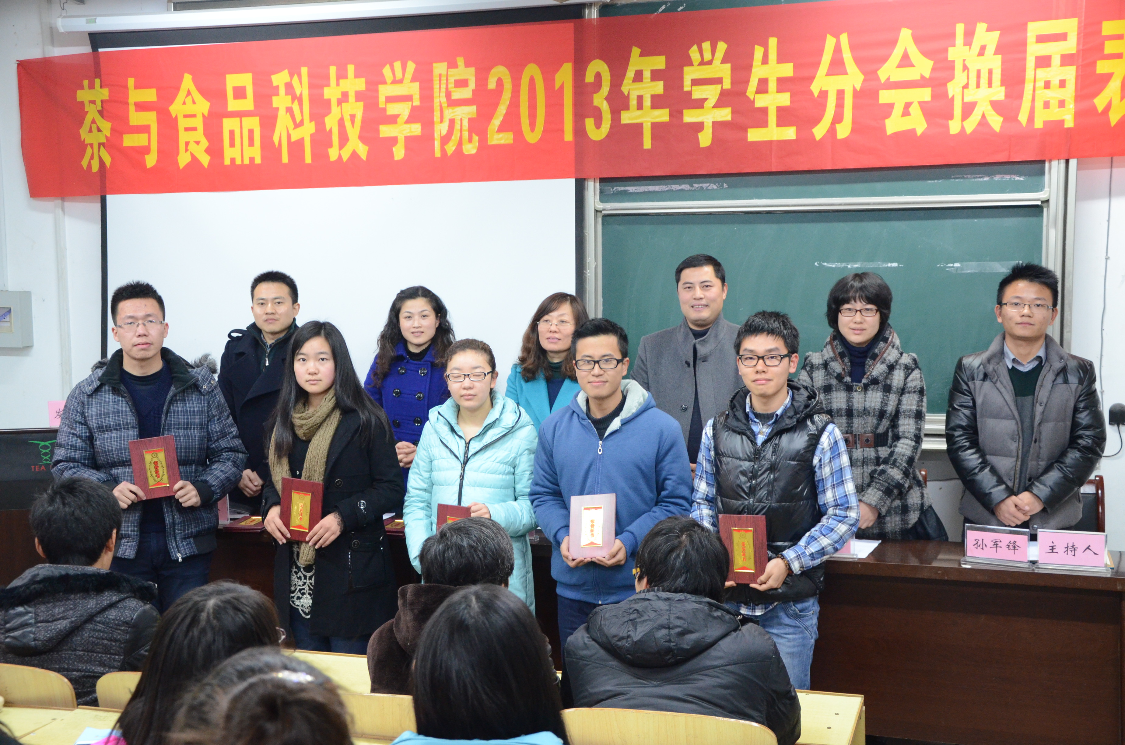 本网讯 12月25日下午,茶与食品科技学院第十届学生分会成立暨优秀学生干部表彰大会在茶业楼112隆重召开。学院党委书记崔云,党委副书记、副院长张国学出席大会,学院党团委老师及全体学生干部参加了会议,会议由院团委老师主持。