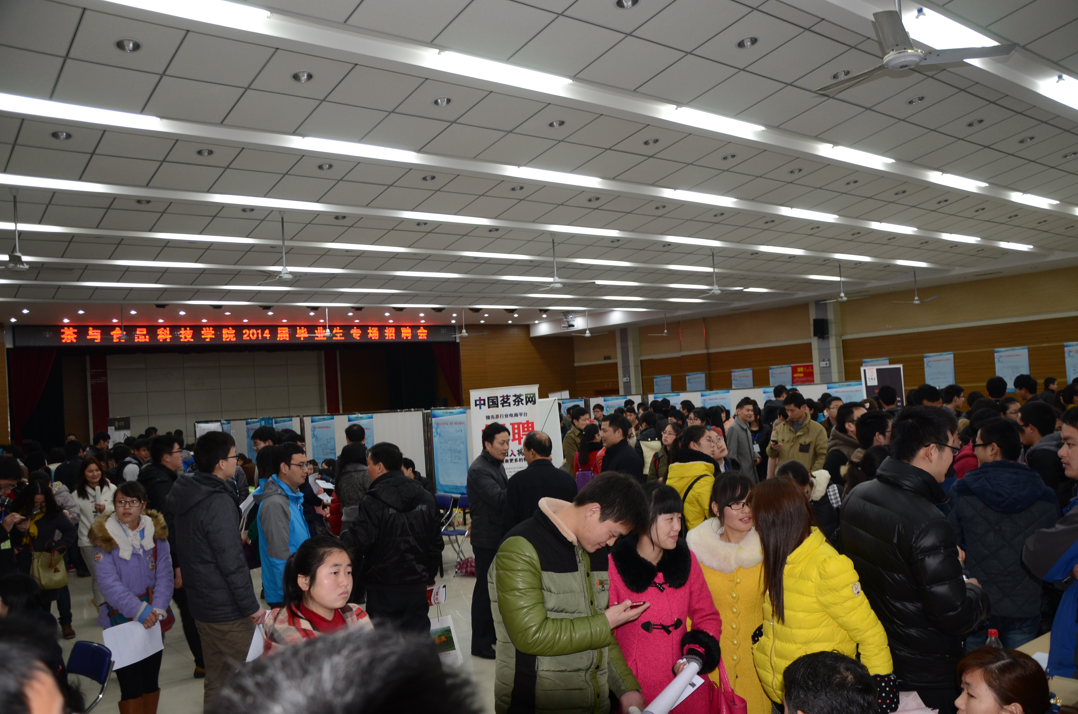 浙江茗皇天然食品开发有限公司、杭州艺福堂茶业有限公司、黄山谢裕大茶业股份有限公司、安徽大业茗丰茶叶有限公司、南京雨润食品有限公司、合肥伊利乳业有限责任公司等近70家用人单位来校招聘,招聘会为毕业生提供生产、研发、品控、营销、管理等1300多个就业岗位。涉及茶学、茶文化与贸易、食品、园艺、农学、物流、电子商务、财务管理和市场营销等相关专业。在招聘现场,毕业生与招聘方积极交谈、咨询和推介自己,认真寻觅自己理想的工作岗位。学院部分非毕业班的同学也到现场参加咨询,研读用人单位招聘信息,倾听用人单位和毕业生的交谈,有的还主动坐下来同用人单位接洽,推荐自己去用人单位实习或者工作,为下一步就业工作“早计划早准备”。
