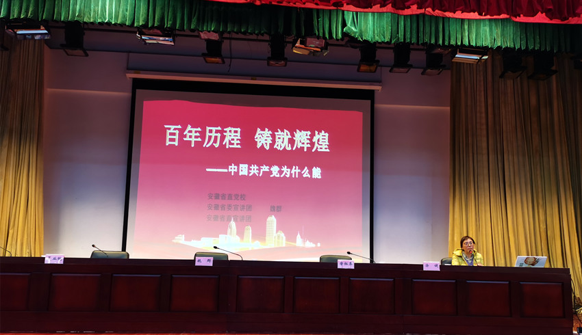 省直机关工委党校副教授、省委讲师团专家库成员、省直讲师团专家魏群应邀作首场专题讲座。魏群以“百年历程 铸就辉煌——中国共产党为什么能”为主题,重点从“用真理的力量开辟历史”、“用人民的力量创造历史”、“用自身的力量引领历史”三个方面,娓娓道来、条分缕析、旁征博引,深入阐述了中国共产党人的“初心和使命”,进一步指出了合格共产党员在政治、思想、作风等方面的要求。魏群鼓舞青年大学生要用中国共产党的奋斗历程和伟大成就激励自己,勇担起民族复兴的时代大任,切实把学习成果转化为干事创业的强大动力。整堂党课主题鲜明、内容丰富、重点突出,具有重要的理论指导意义。