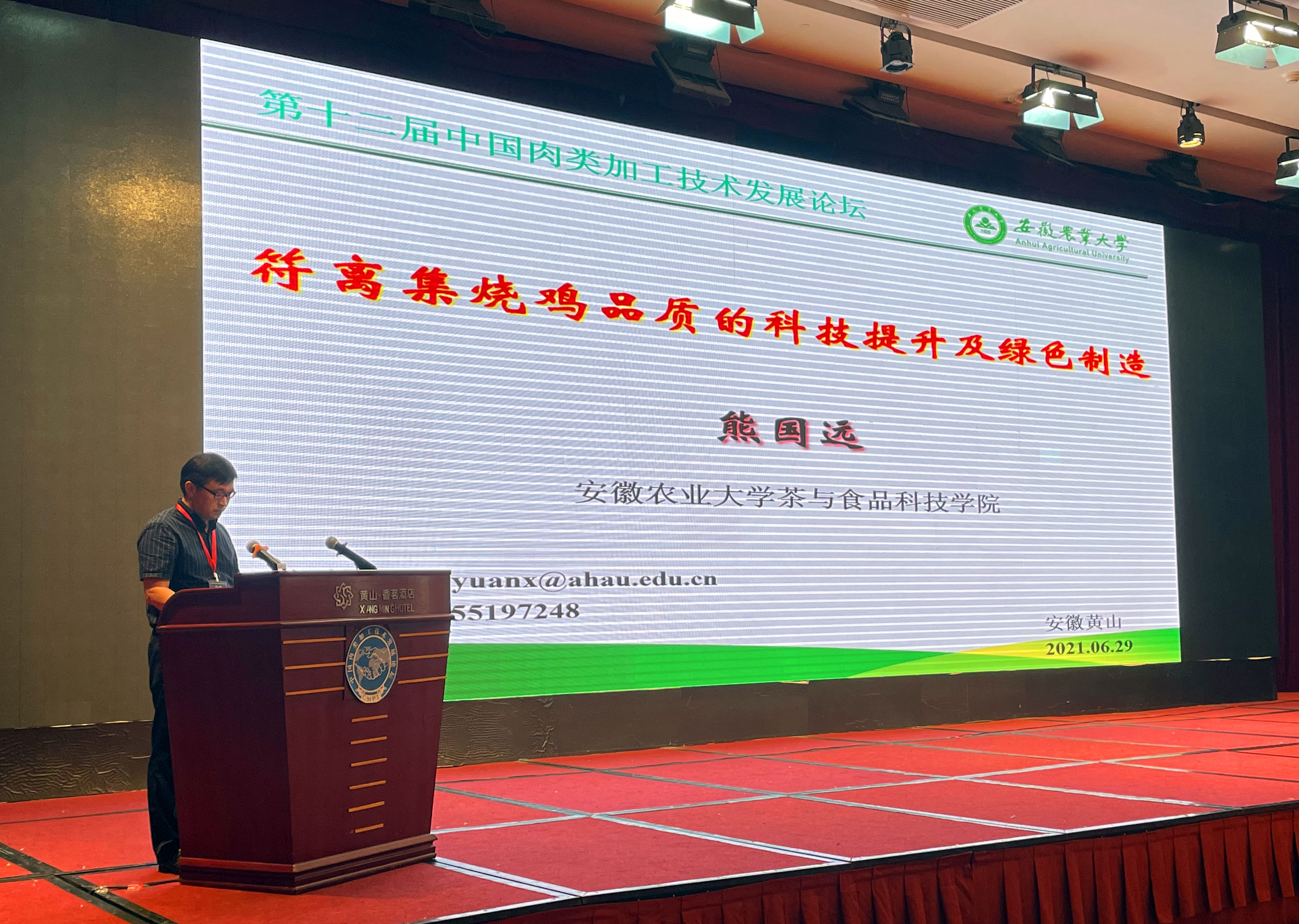 本网讯 6月28-30日,在热烈庆祝中国共产党成立100周年之际,由安徽农业大学茶与食品科技学院、北京盛华宝业食品信息资讯中心和安徽省肉类行业协会共同承办的“第十二届中国肉类加工技术发展论坛”在安徽黄山成功举行。我院唐红萍书记、夏业鲍副书记、熊国远教授出席会议,学院畜产品加工团队老师和学院安徽省农产品加工工程实验室研究生代表参加了会议。中国畜牧业协会副秘书长刘强德、安徽省畜牧技术推广总站副站长吴宓总畜牧师、安徽省肉类行业协会执行会长孙礼正及黄山市相关领导出席开幕式并讲话。