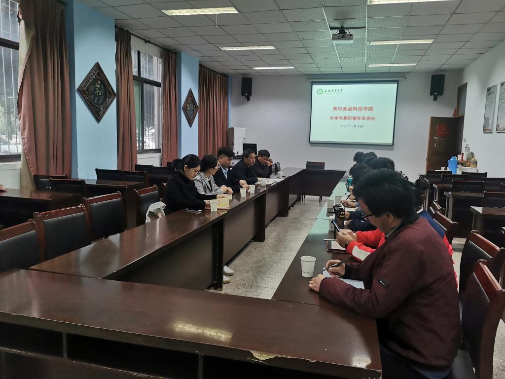 本网讯 10月20日,学院在茶业楼105室召开全体专兼职辅导员工作例会,全体本科生、研究生辅导员参与。会议由学院党委副书记、副院长夏业鲍主持。