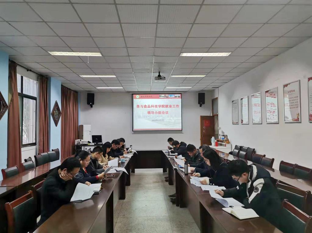 本网讯 3月3日上午, 茶与食品科技学院2022年就业工作领导小组推进会在茶业楼105会议室顺利召开。学院党政领导班子、2022届毕业班辅导员参加会议。会议由学院党委副书记、纪委书记、副院长夏业鲍主持。