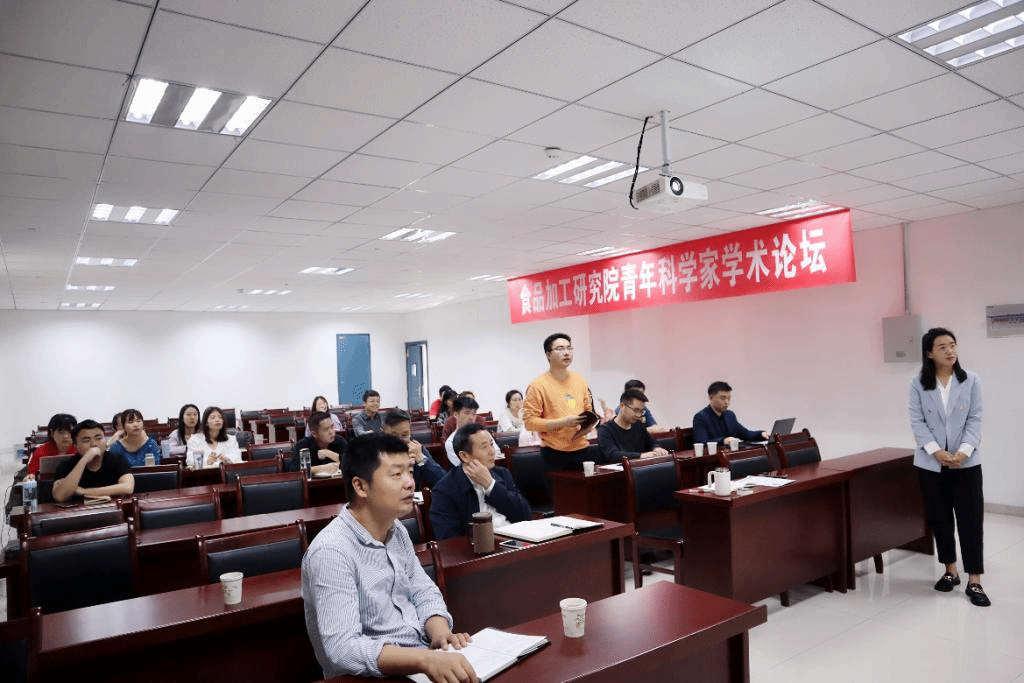 学术交流中,程永强教授从魔芋面团的物化性质、魔芋葡甘露聚糖与小麦淀粉和面筋蛋白的构效机理、面团的消化吸收及功能特性四个方面,揭示魔芋葡甘露聚糖对小麦面团和制品特性的影响机制,并介绍了如何将基础研究与应用结合,构建新型方便主食加工技术,完善方便主食产品结构,推动方便主食产业升级。徐丽广教授立足国家对现场、廉价、快速、高灵敏检测技术的重大需求,从高效识别分子制备、新型高效免疫佐剂研发、快速前处理技术、定量快速检测四个方面详细介绍了食品安全生物检测新技术,指出识别分子的升级创新及检测模式的快速、可视化、定量化、信息化是食品生物快速检测技术的未来发展趋势。许文涛教授根据功能核酸的本质属性,从核酸核酶、核糖开关、核酸营养、核酸裁剪等方面系统介绍了功能核酸的内涵与外延,指出功能核酸对功能食品、靶向药物、纳米材料的开发与设计具有重要作用。王书军教授详细介绍了热加工前后凝胶化过程中淀粉“短程有序结构”的变化规律,及对淀粉回生和消化特性的影响机制,指出通过调控食品热加工过程中淀粉的多尺度结构进而精准控制其营养消化吸收对于实现主食的精准营养和个性化制造具有重要意义,是今后需要进一步突破的基础研究方向。在交流互动环节中,师生们积极提问,专家教授们结合自身研究领域就科研学术问题进行了深入交流和探讨,论坛取得良好预期效果。