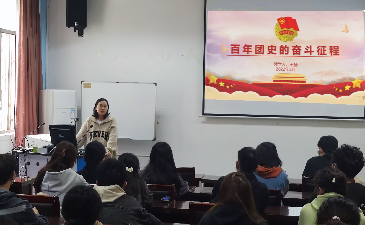 感悟思想伟力,凝聚青春力量。学院团委邀请学院干部、教师走进团支部,围绕习近平总书记视察中国人民大学时的重要讲话精神开展一系列专题学习,与正在开展的“喜迎二十大、永远跟党走、奋进新征程”主题教育紧密结合,充分发挥组织化学习优势,引导广大团员青年坚定信念跟党走。学院党委副书记夏业鲍通过回顾党的十八大以来,习近平总书记十年来在五四青年节提出的伟大精神与嘱托期望,鼓励青年朋友们听党话、跟党走,坚定历史责任与政治站位,以实际行动迎接党的二十大胜利召开。学院团委老师王扬围绕中国共青团百年奋斗的历史为切入点,带领大家领略共青团百年奋斗中体现出的政治性、群众性、科学性、先进性,植根青年,锐意进取,勉励青年坚持团组织的领导,自觉向党看齐,在新时代继续书写不负党和人民殷切期望的精彩篇章。