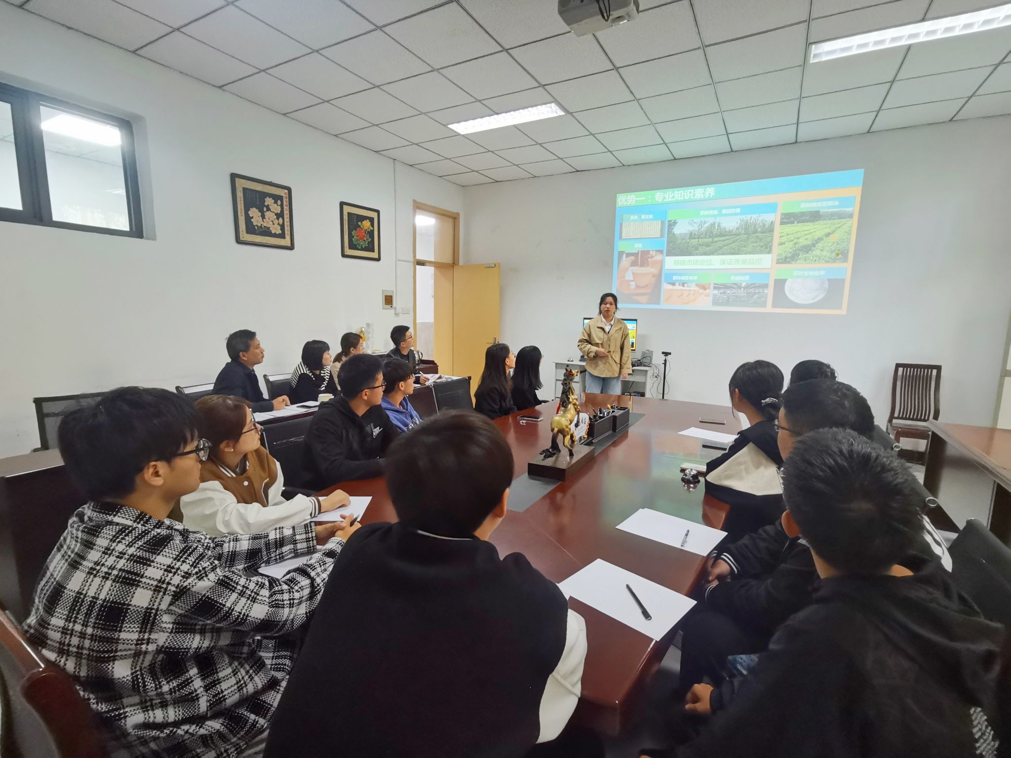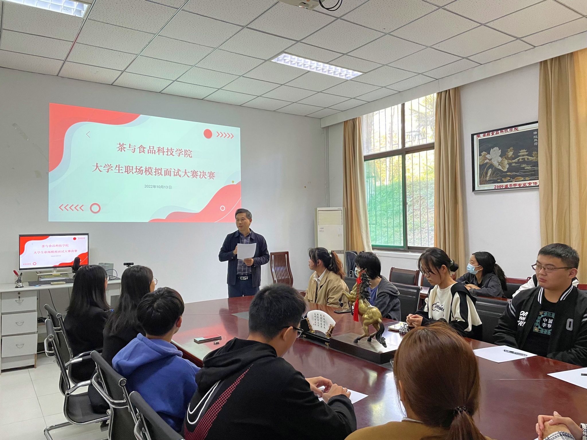 本网讯 为进一步加强大学生就业指导力度,帮助毕业生更加深刻了解与体会企业招聘的流程和氛围,提高求职路上的竞争力,10月13日,茶与食品科技学院在茶业楼114会议室举办职场模拟面试大赛。学院党委副书记夏业鲍、专职辅导员到场指导。