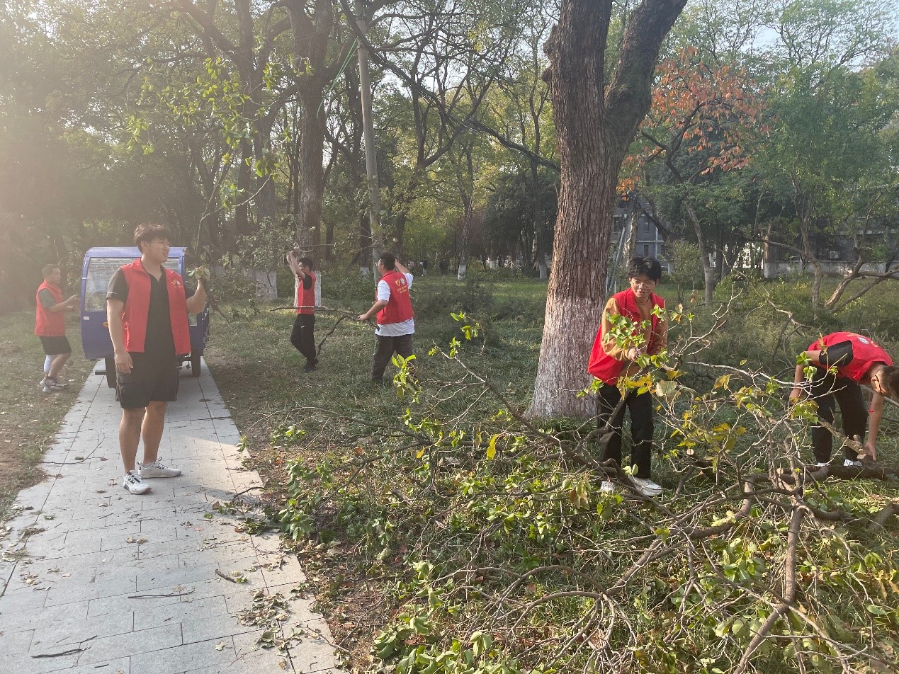 活动中,我院志愿者身穿志愿马甲,充满热情地投入工作,帮忙拖运修剪完的树枝,大家积极行动,相互配合,将服务意识和奉献精神体现的淋漓尽致。他们有的忙着收拾枝叶,有的忙着扛枝头。不怕脏累,干劲十足。志愿者以能够为美丽校园环境贡献出自己的一份力量为荣,乐在其中。