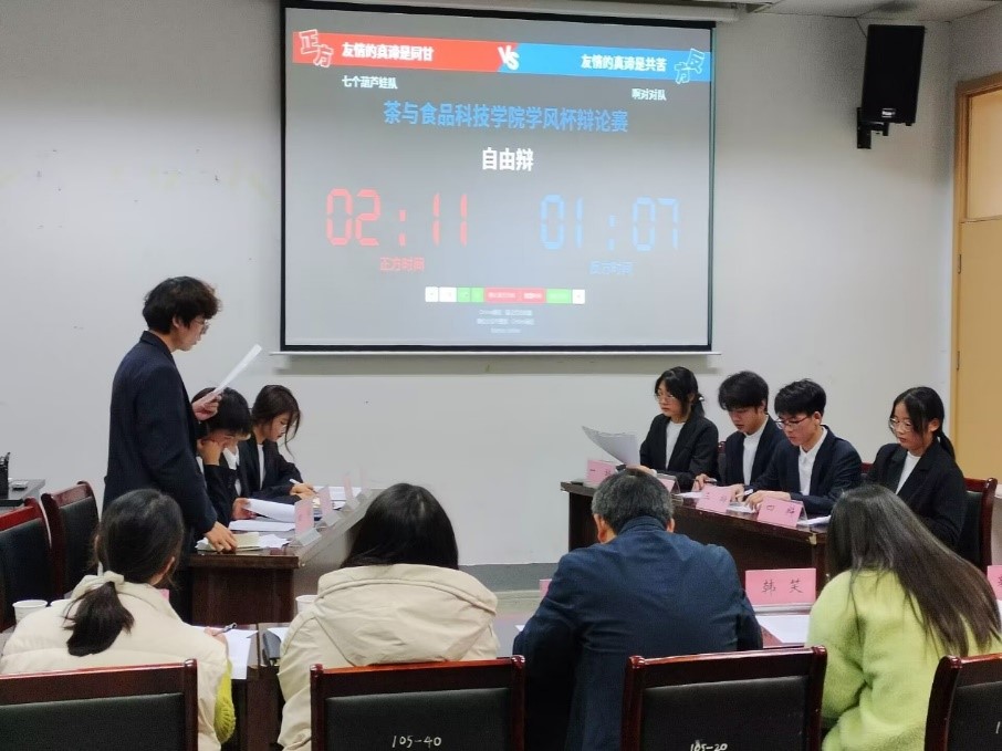 本网讯 以辩明德,以论明理。11月28日晚,茶与食品科技学院第十届“学风杯”辩论赛决赛在茶业楼107室圆满落幕。学院党委副书记夏业鲍、相关学院团委老师及专职辅导员出席本次辩论赛。